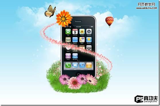 PS圖片合成:炫酷的iPhone手機天空之城 ... [更多詳細]