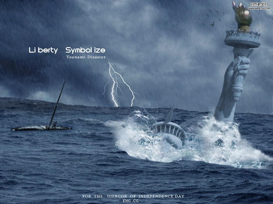 PS合成教程:自由女神破碎掉大海里 ... [更多詳細]