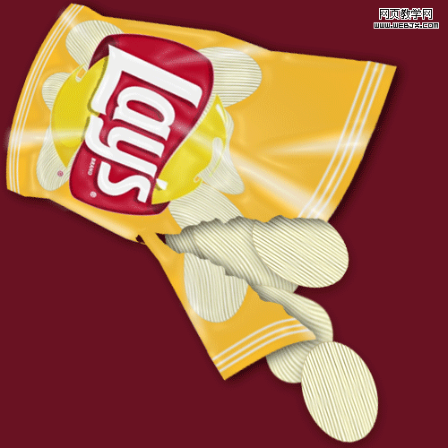Photoshop繪制撕開口的樂事美味薯片塑料包裝 ... [更多詳細]