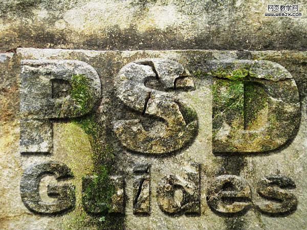 PS制作真實的帶苔蘚的破損的石頭文字 ... [更多詳細]