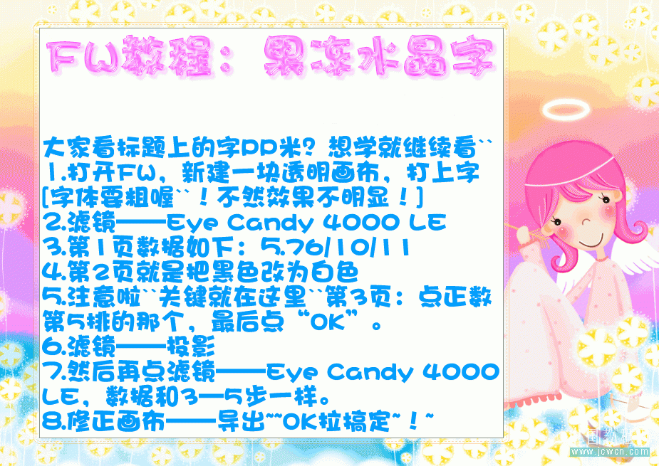Fireworks教程:制作可愛晶瑩果凍字 ... [更多詳細(xì)]