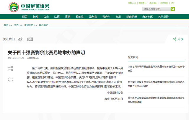 中國足協:國足40強賽剩余比賽移至迪拜舉行 ... [更多詳細]
