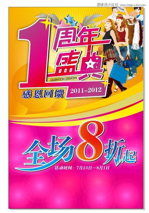 教你用CorelDraw制作1周年盛典打折宣傳海報 ... [更多詳細]