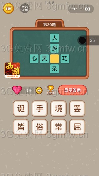 微信全民猜字第35題答案_微信小程序全民猜字答案第35題 ... [更多詳細]
