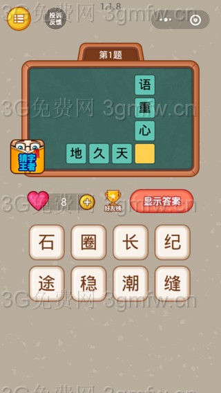 微信全民猜字第1題答案_微信小程序全民猜字答案第1題 ... [更多詳細]