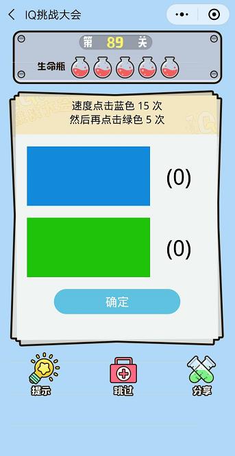 微信IQ挑戰大會第89關【速度點擊藍色15次然后再點擊綠色5次】答案攻略 ... [更多詳細]