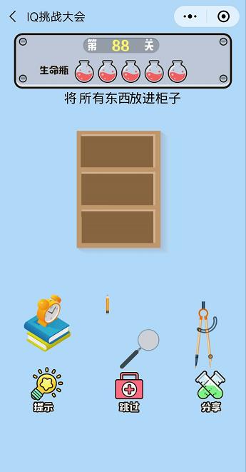 微信IQ挑戰大會第88關【將所有東西放進柜子】答案攻略 ... [更多詳細]
