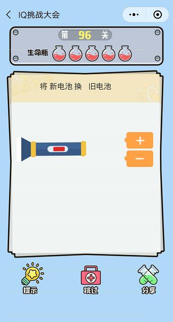 微信IQ挑戰大會第96關【將新電池換舊電池】答案攻略 ... [更多詳細]