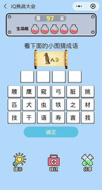 微信IQ挑戰大會第97關【看下面的小圖猜成語】答案攻略 ... [更多詳細]