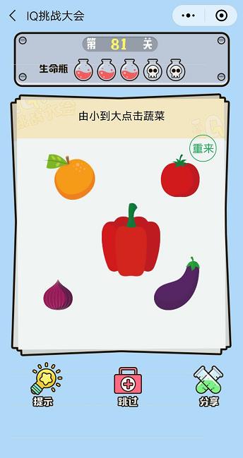 微信IQ挑戰大會第81關【由小到大點擊蔬菜】答案攻略 ... [更多詳細]