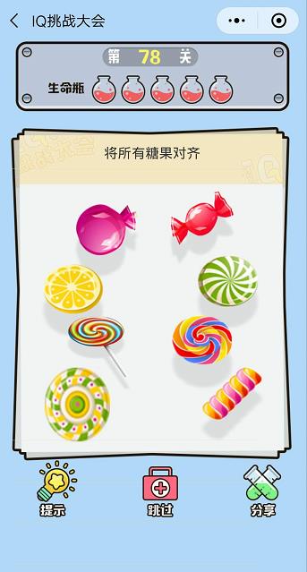 微信IQ挑戰大會第78關【將所有糖果對齊】答案攻略 ... [更多詳細]