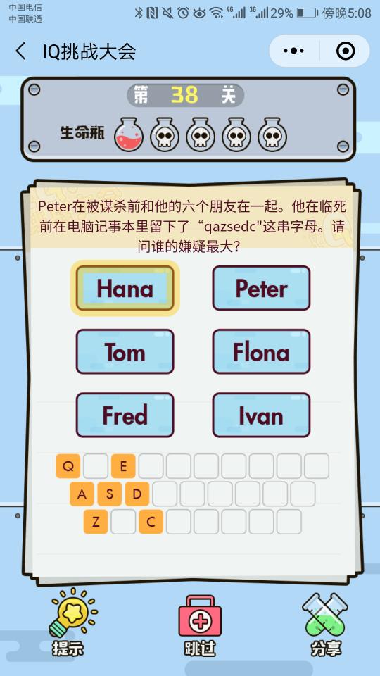 微信IQ挑戰大會第38關【請問誰的嫌疑最大】答案攻略 ... [更多詳細]