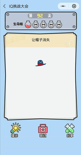 微信IQ挑戰大會第92關【讓帽子消失】答案攻略 ... [更多詳細]