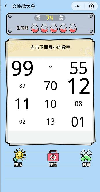 微信IQ挑戰(zhàn)大會第74關(guān)【點擊下面最小的數(shù)字】答案攻略 ... [更多詳細]