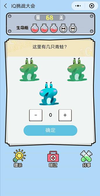 微信IQ挑戰(zhàn)大會第68關(guān)【這里有幾只青蛙】答案攻略 ... [更多詳細]