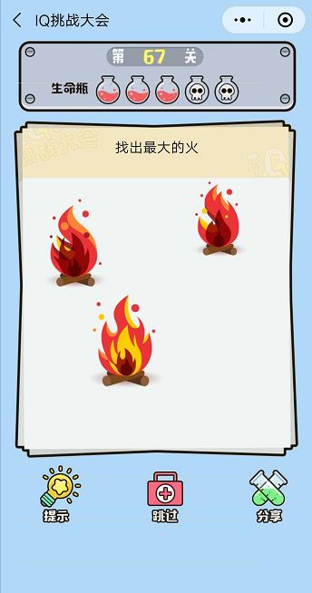 微信IQ挑戰(zhàn)大會第67關(guān)【找出最大的火】答案攻略 ... [更多詳細]