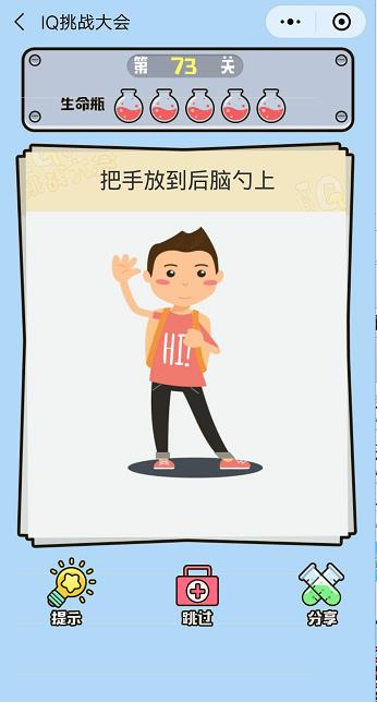 微信IQ挑戰(zhàn)大會第73關(guān)【把手放到后腦勺上】答案攻略 ... [更多詳細]