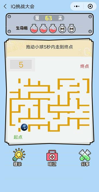 微信IQ挑戰(zhàn)大會第63關(guān)【拖動小球5秒內(nèi)走到終點】答案攻略 ... [更多詳細]