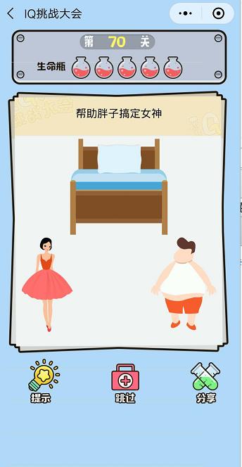 微信IQ挑戰(zhàn)大會第70關(guān)【幫助胖子搞定女神】答案攻略 ... [更多詳細]