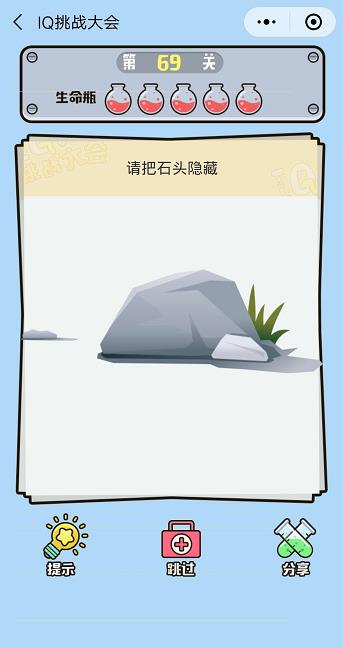 微信IQ挑戰(zhàn)大會第69關(guān)【請把石頭隱藏】答案攻略 ... [更多詳細]