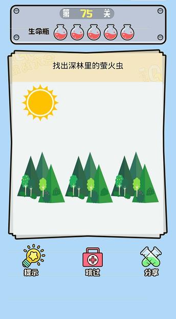 微信IQ挑戰(zhàn)大會第75關(guān)【找出深林里的螢火蟲】答案攻略 ... [更多詳細]