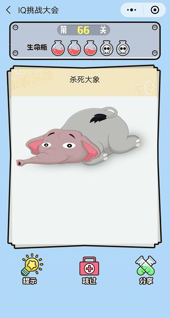 微信IQ挑戰(zhàn)大會第66關(guān)【殺死大象】答案攻略 ... [更多詳細]