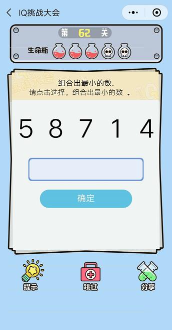 微信IQ挑戰(zhàn)大會第62關(guān)【組合出最小的數(shù)】答案攻略 ... [更多詳細]