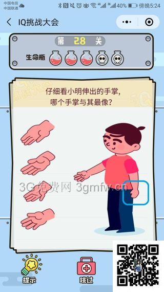 微信IQ挑戰大會第28關【仔細看小明伸出的手掌哪個手掌與其最像】答案攻略 ... [更多詳細]