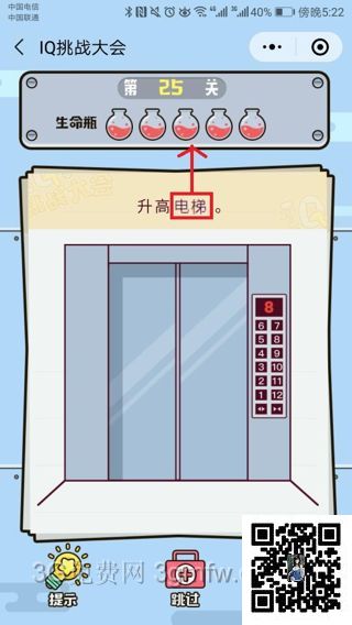 微信IQ挑戰大會第25關【升高電梯】答案攻略 ... [更多詳細]
