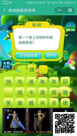 微信挑戰腦筋急轉彎答案_微信小程序挑戰腦筋急轉彎攻略 ... [更多詳細]