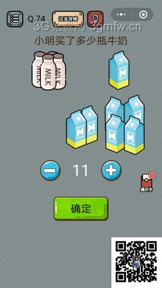 微信最強腦洞游戲第74關【小明買了多少瓶牛奶】答案攻略 ... [更多詳細]