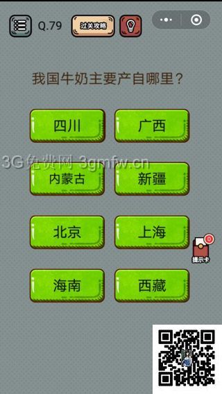 微信最強腦洞游戲第79關【我國牛奶主要產自哪里】答案攻略 ... [更多詳細]