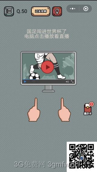 微信最強腦洞游戲第50關【國足闖進世界杯了電腦點擊播放看直播】答案攻略 ... [更多詳細]