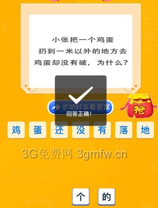 微信智商大作戰(zhàn)第22關【小張把一個雞蛋扔到一米以外的地方去雞蛋卻沒有破為什么】答案攻略 ... [更多詳細]
