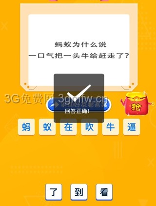 微信智商大作戰(zhàn)第31關【螞蟻為什么說一口氣把一頭牛給趕走了】答案攻略 ... [更多詳細]