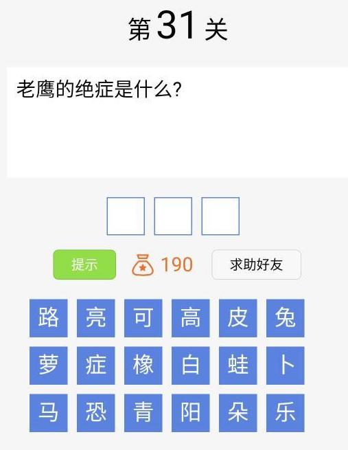 微信腦筋急轉彎大闖關第31關【老鷹的絕癥是什么】答案攻略 ... [更多詳細]