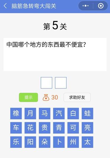 微信腦筋急轉彎大闖關第5關【中國哪個地方的東西最不便宜】答案攻略 ... [更多詳細]