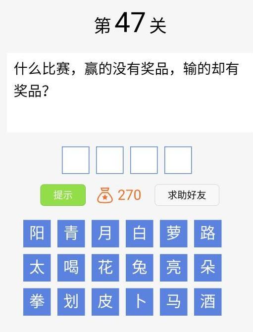 微信腦筋急轉彎大闖關第47關【什么比賽贏的沒有獎品輸的卻有獎品】答案攻略 ... [更多詳細]