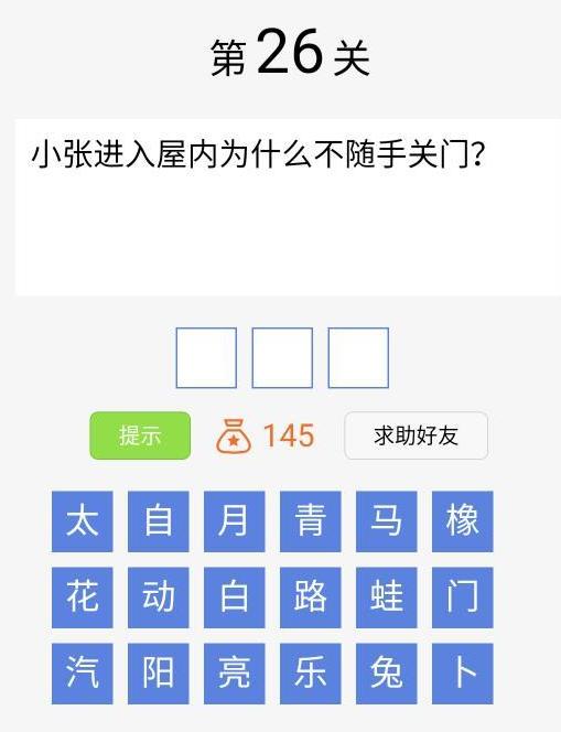 微信腦筋急轉彎大闖關第26關【小張進入屋內為什么不隨手關門】答案攻略 ... [更多詳細]