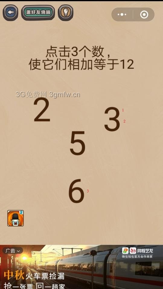 微信最燒腦游戲劈腿2第10關【點擊3個數使它們相加等于12】答案攻略 ... [更多詳細]