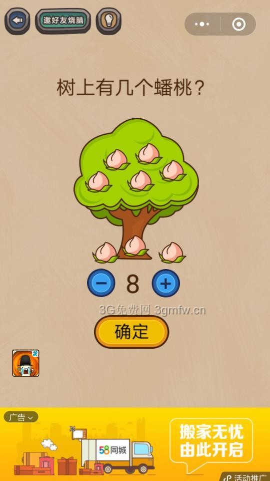 微信最燒腦游戲劈腿2第6關【樹上有幾個蟠桃】答案攻略 ... [更多詳細]