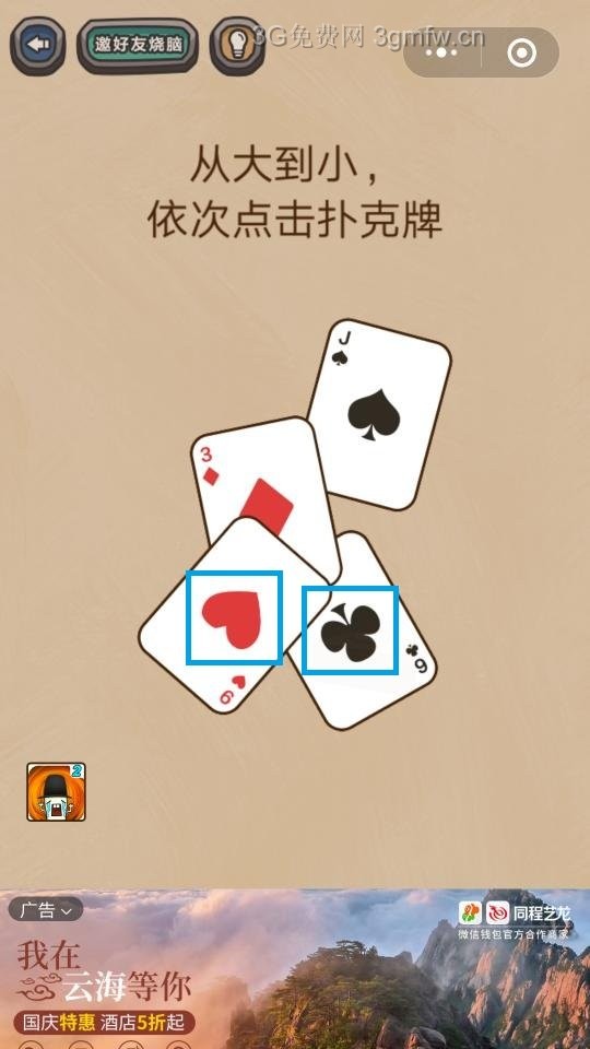微信最燒腦游戲劈腿2第2關【從大到小依次點擊撲克牌】答案攻略 ... [更多詳細]
