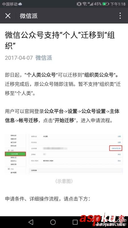 微信公眾號支持"個人"遷移到"組織"(附帳號遷移詳細流程圖) ... [更多詳細]