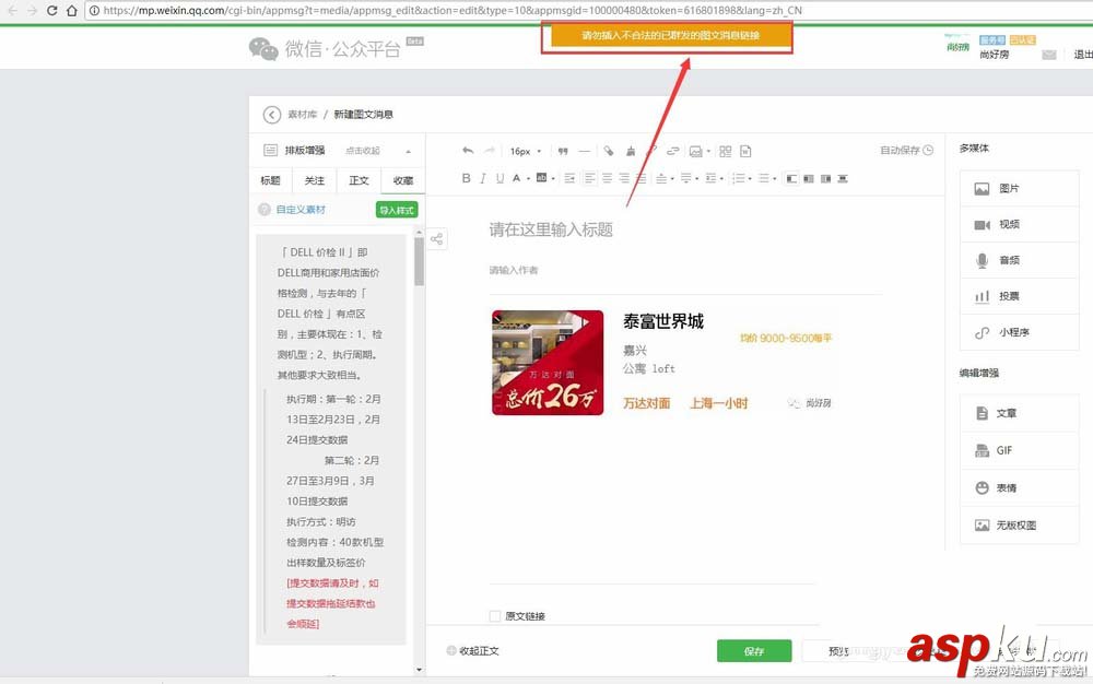 微信公眾號文章中提示無法插入未群發的文章怎么辦? ... [更多詳細]