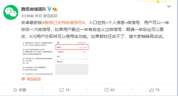 微信號修改功能正式上線:免費、一年一次 ... [更多詳細]
