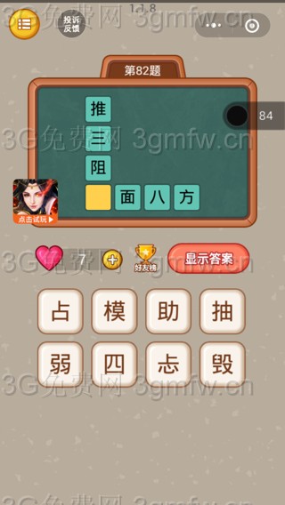 微信全民猜字第82題答案_微信小程序全民猜字答案第82題 ... [更多詳細]
