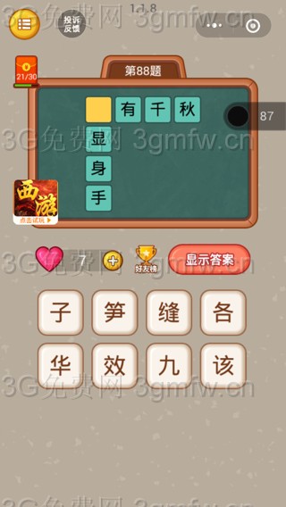 微信全民猜字第88題答案_微信小程序全民猜字答案第88題 ... [更多詳細]
