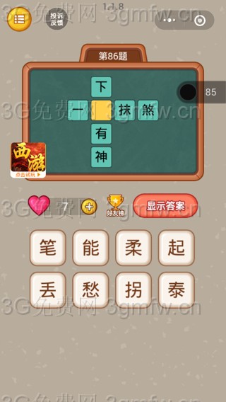 微信全民猜字第85題答案_微信小程序全民猜字答案第85題 ... [更多詳細]