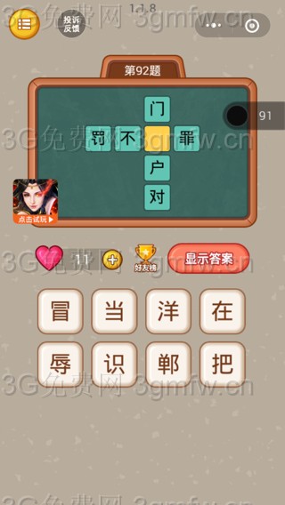 微信全民猜字第92題答案_微信小程序全民猜字答案第92題 ... [更多詳細]