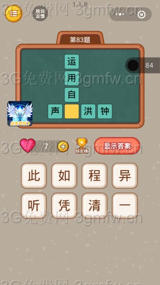 微信全民猜字第84題答案_微信小程序全民猜字答案第84題 ... [更多詳細]